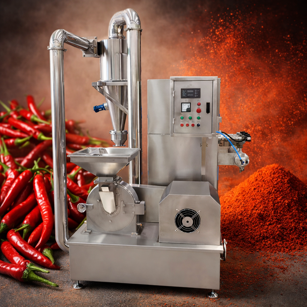 Cukraus glazūra Jeera Kaju Masala miltelių malūnėlis naudoja santykinį judėjimą tarp aktyviojo rievėto disko ir fiksuoto rievuoto disko, kad atsitrenktų, šlifuotų ir susmulkintų tikslines medžiagas. Susmulkinta medžiaga gali patekti į surinkimo dėžę veikiant išcentrinei jėgai. Šlifavimo metu susidariusios dulkės filtruojamos ir perdirbamos per medžiaginį maišelį arba dulkių sugėrimo dėžutės filtrą. Visa mašina, suprojektuota pagal "GMP" standartą, pagaminta iš nerūdijančio plieno, taip išvengiant dulkių skraidymo, pagerinti žaliavos panaudojimą ir sumažinti gamybos sąnaudas. Šiuo metu mašina yra pasaulinio pažangaus lygio.