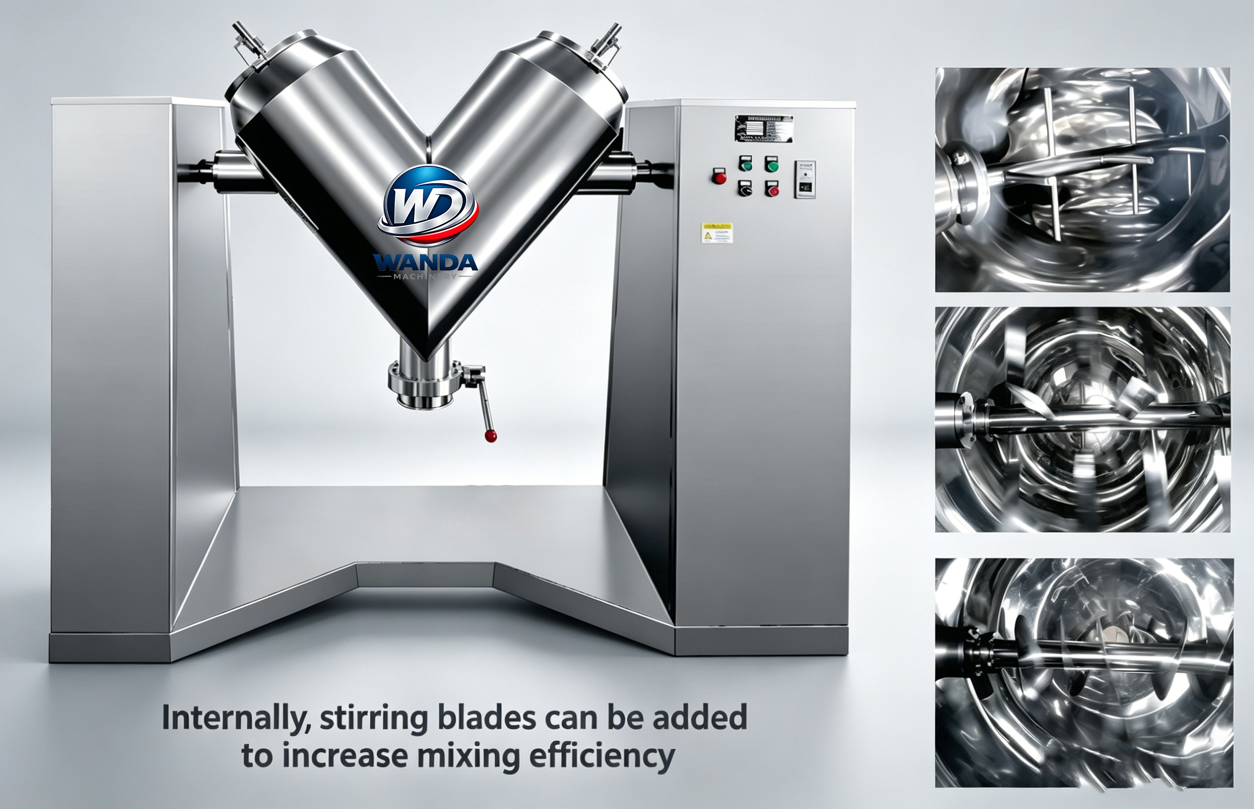 Pagrindiniai privalumai:✅Plačiai naudojamas maisto, farmacijos, chemijos ir vaistažolių perdirbimo pramonėje.✅ Švelnus maišymas, nepažeidžiama medžiagos struktūra✅ Tolygus maišymo efektas, nėra medžiagų stratifikacijos✅ Maistinio nerūdijančio plieno konstrukcija, lengva valyti✅ Sertifikuota CE ir GMP, tinkama farmacijos ir maisto pramonėje, nuo mažų gamybos linijų iki individualių modelių. aptarnavimas ir techninė pagalba